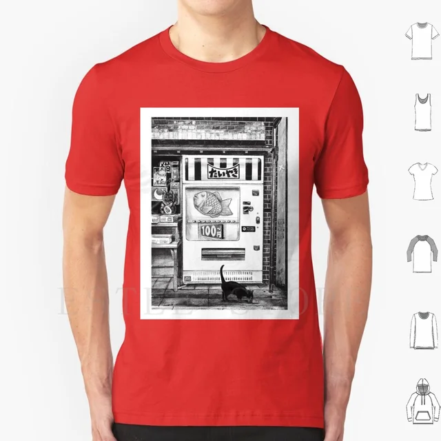 Cats Amp Vending Machines T Shirt Cotton Men Diy Print Cats Vending Machine Japan Tokyo Taiyaki T Shirts Aliexpress